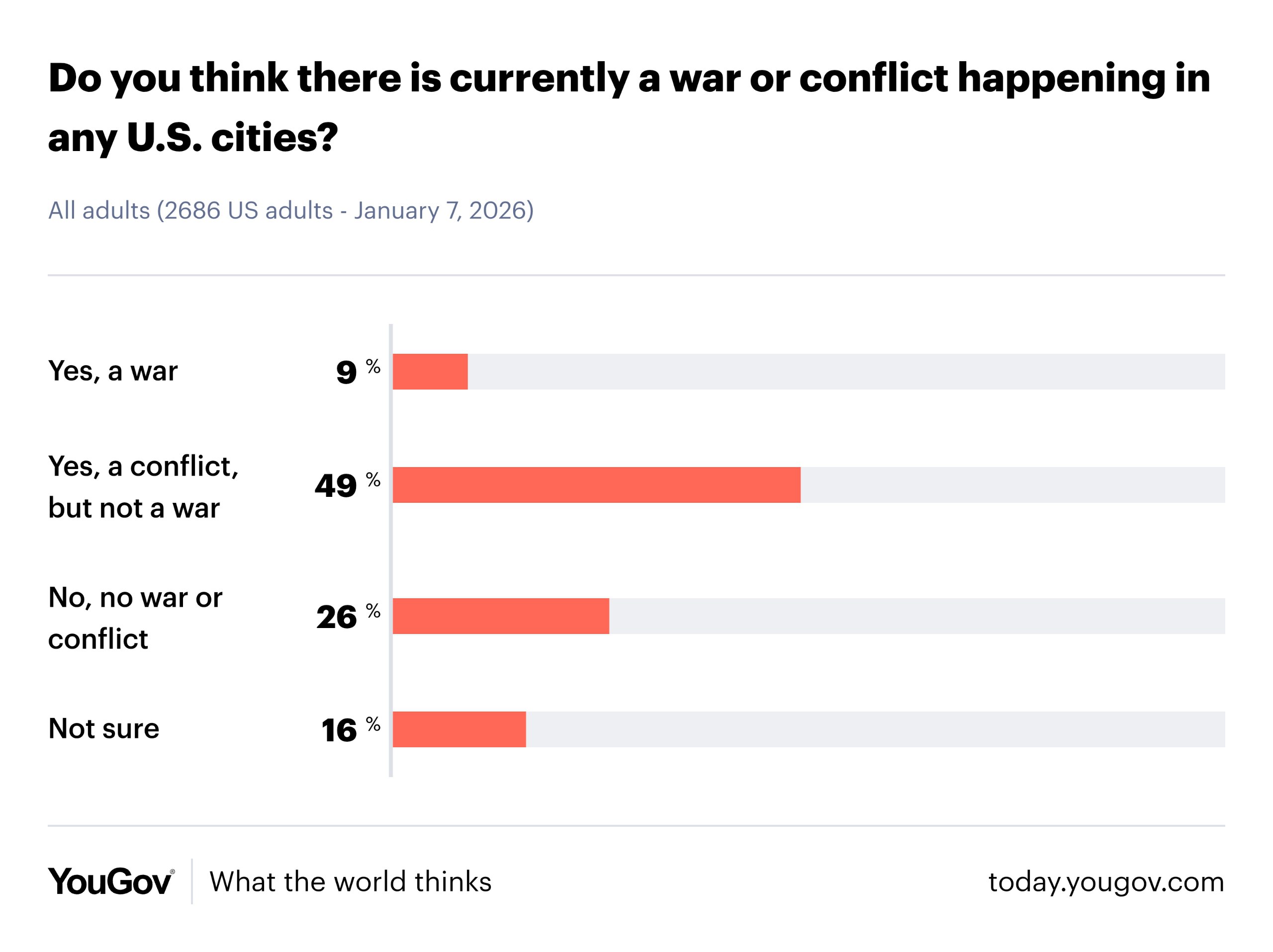 The YouGov poll indicates a notable shift in public sentiment regarding urban safety and federal immigration enforcement. The survey reveals that 58% of Americans perceive a state of conflict in U.S. cities, suggesting a heightened awareness or concern about violence, protests, and social unrest. This perception may be influenced by various factors, including recent events, media coverage, and ongoing political discussions.