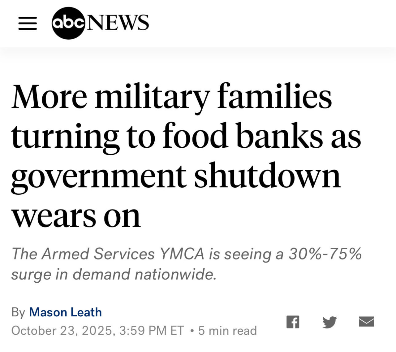 This surge in need highlights the challenges faced by military families during the shutdown, as they rely on food banks for essential support. The Armed Services YMCA continues to provide resources and assistance to those affected.