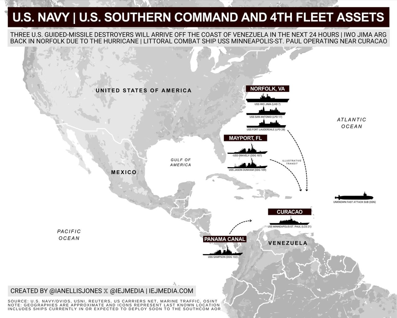 The deployment of the destroyers is part of a broader strategy by the U.S. Southern Command aimed at addressing potential threats in the region. The USS Minneapolis-St. Paul, a littoral combat ship, is already stationed near Curacao, providing additional naval presence. The Iwo Jima Amphibious Ready Group (ARG), which recently returned to Norfolk, Virginia, is currently waiting out a hurricane, potentially impacting its operational capabilities in the near term.