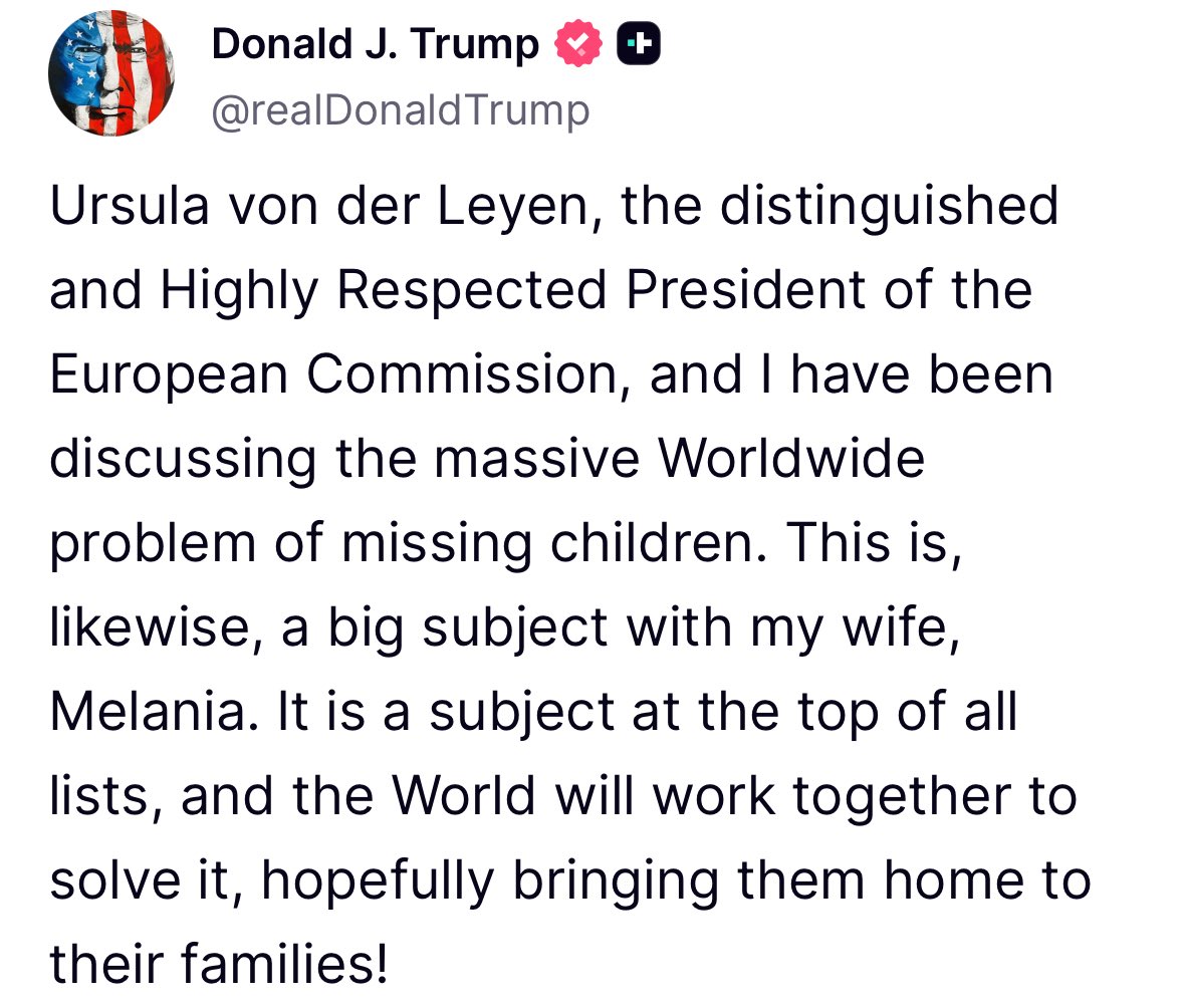 Breaking: Trump and Ursula von der Leyen Address Urgent Missing Children Crisis