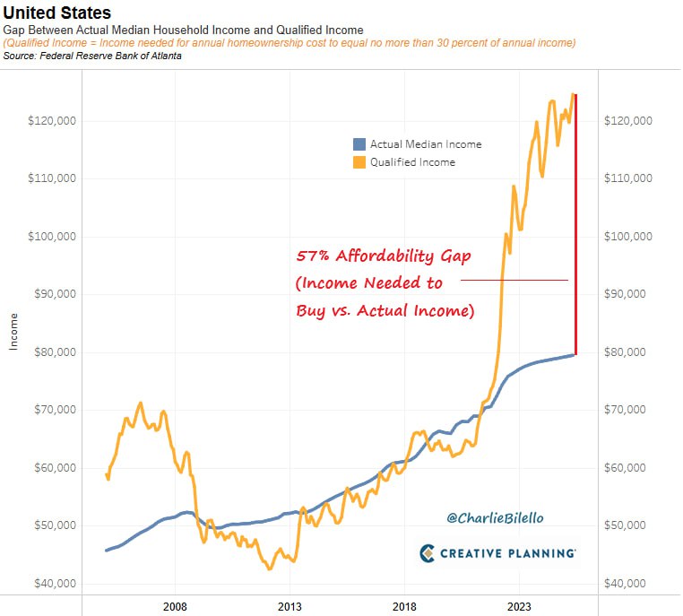The U.S. housing market has reached a historic low in affordability, as the median household income necessary to purchase the median-priced home has surged to $124,000—57% higher than the current median household income of $79,000. This alarming disparity marks the most unaffordable housing market in U.S. history, as reported today, August 22, 2025.