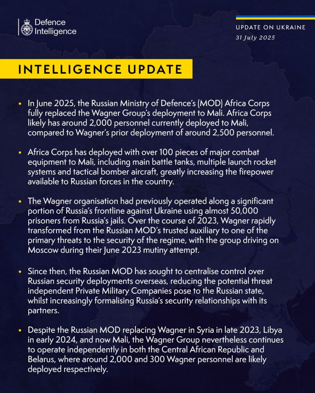 British Intelligence Confirms Africa Corps Takes Over Wagner"s Role in Mali, Raises Concerns