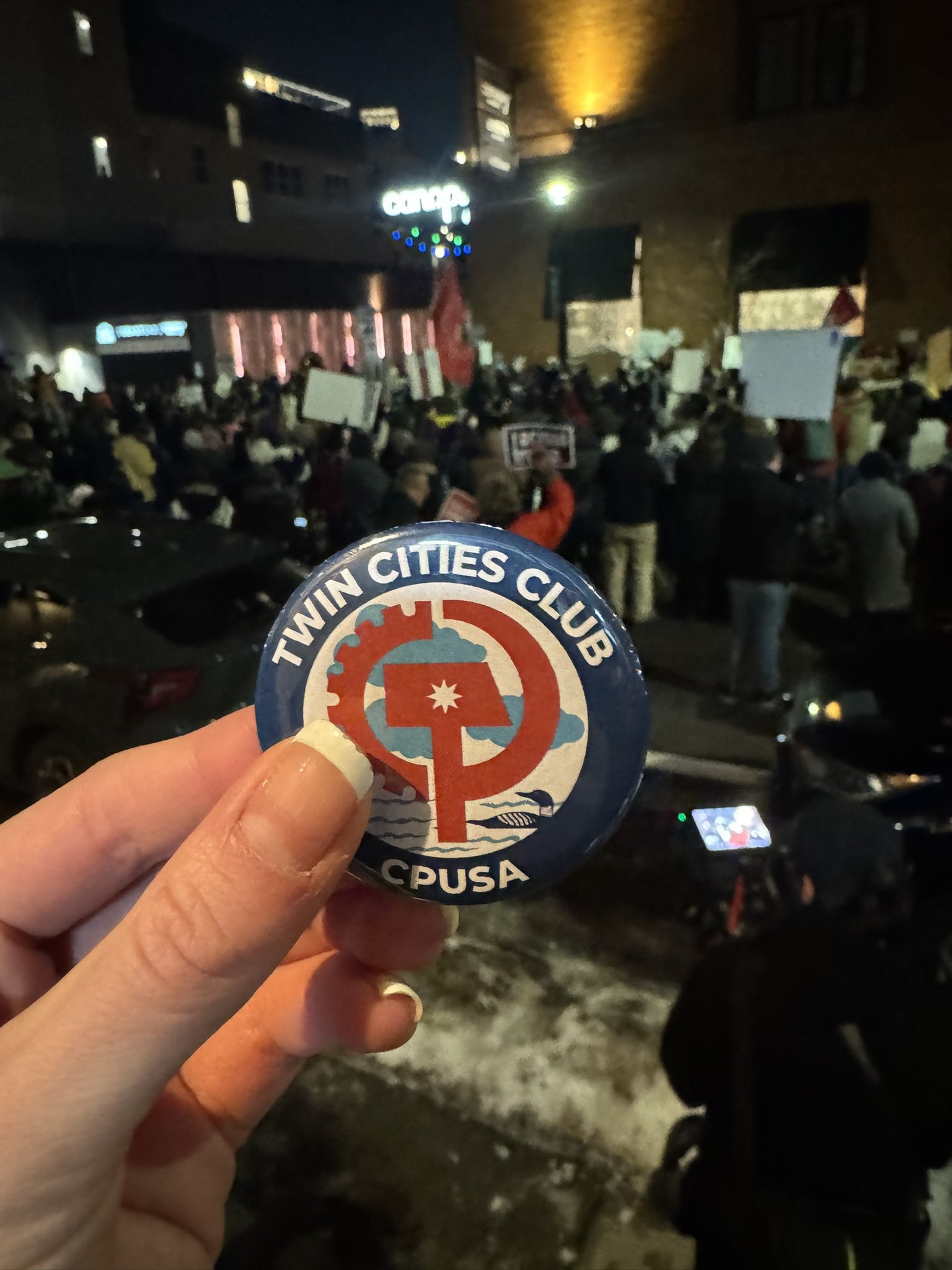 On January 9, 2026, the Communist Party was observed organizing protests in Minneapolis. Participants were seen distributing pins that matched the flags they were waving during the event.