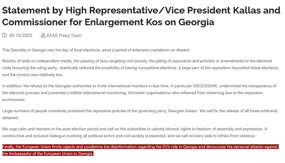 The EU"s response underscores its commitment to addressing false narratives that may undermine its role in supporting democratic processes in Georgia.