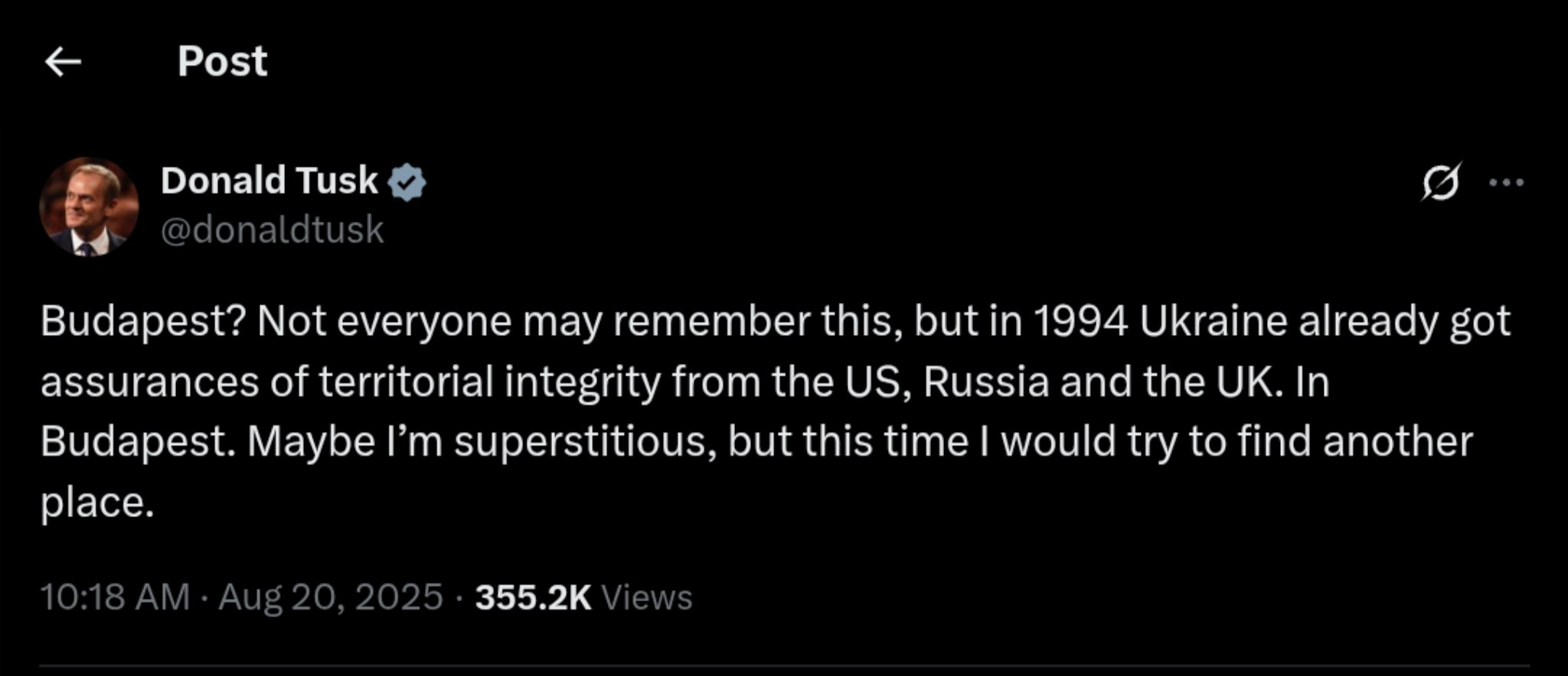 Polish Prime Minister Donald Tusk has raised concerns over the potential choice of Budapest as the venue for a proposed meeting between Ukrainian President Volodymyr Zelensky and Russian President Vladimir Putin. In a recent statement, Tusk emphasized the historical context of the 1994 Budapest Memorandum, which provided Ukraine with assurances of territorial integrity from the United States, Russia, and the United Kingdom in exchange for the relinquishment of its nuclear arsenal. “Maybe I’m superstitious, but this time I would try to find another place,” Tusk remarked, referencing the past failures of the agreement.