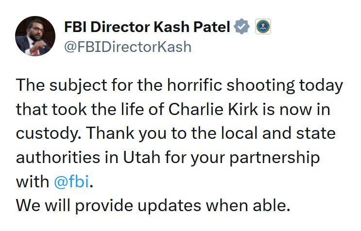 FBI agents have arrested a suspect in connection with the assassination of conservative activist Charlie Kirk, who was shot dead in an incident that has sent shockwaves through political circles. The suspect was taken into custody in Utah, as confirmed by the FBI on social media today.