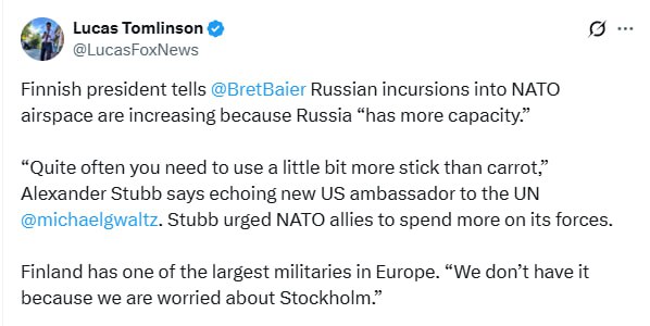 He highlighted that Finland possesses one of the largest militaries in Europe, asserting that the country"s military strength is not a response to concerns about neighboring Sweden. Stubb"s comments align with those of the new U.S. ambassador to the United Nations, Mike Waltz, who suggested that a firmer approach may be necessary in dealing with Russia.