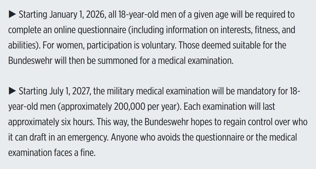 Germany will implement mandatory medical examinations for all men turning 18, a move aimed at regaining control over military draft eligibility in case of an emergency, as reported by Bild. This decision comes amid a broader debate on military conscription in the country.