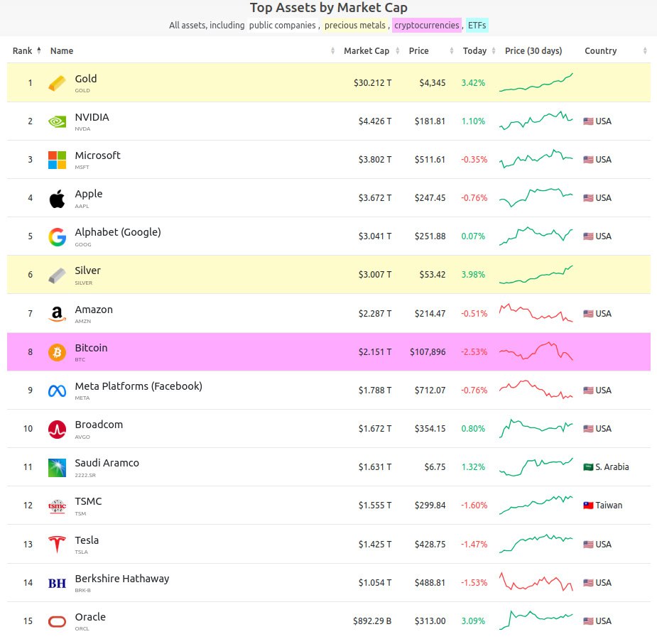 On October 16, 2025, gold reached a significant milestone by becoming the first asset in history to surpass a market capitalization of $30 trillion. This achievement marks a notable moment in the financial landscape.