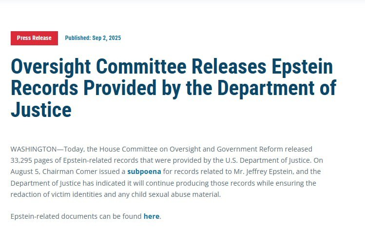 The U.S. House Committee on Oversight and Government has released a staggering 33,295 pages of documents related to Jeffrey Epstein, sourced from the Department of Justice (DOJ). This extensive cache was made public today, shedding new light on the controversial figure and his connections.