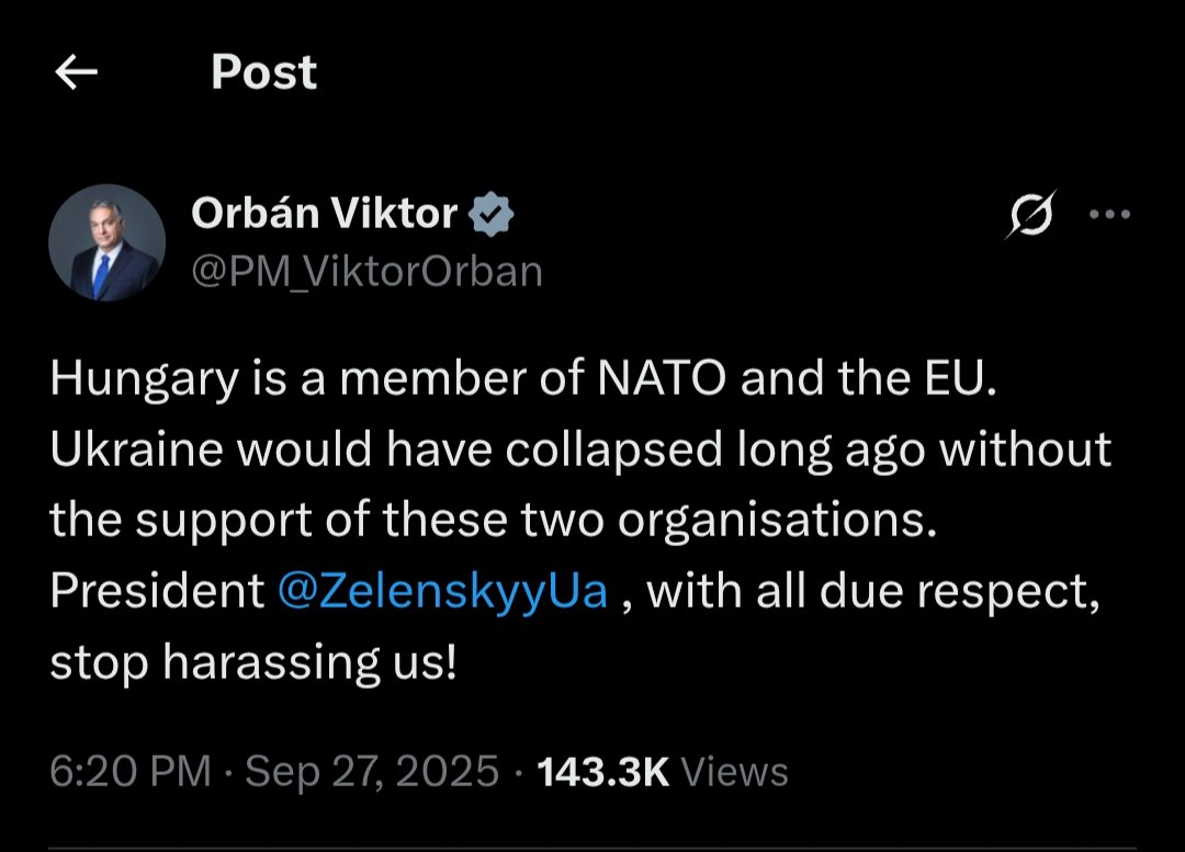 Hungarian Prime Minister Viktor Orbán has called on Ukrainian President Volodymyr Zelensky to cease what he described as harassment. In a statement, Orbán emphasized Hungary"s membership in NATO and the European Union, asserting that Ukraine would have collapsed without the support of these organizations.