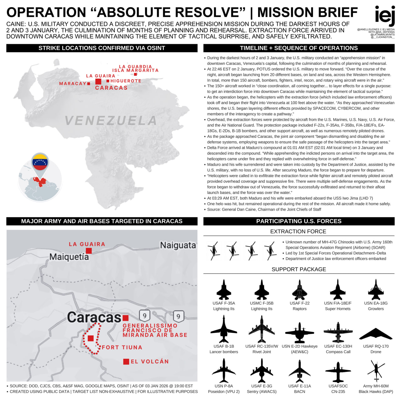An infographic detailing the American aircraft involved in Operation Absolute Resolve has been released. The infographic includes information on various combat platforms, air support, intelligence, surveillance, reconnaissance, and extraction utilized during the mission.