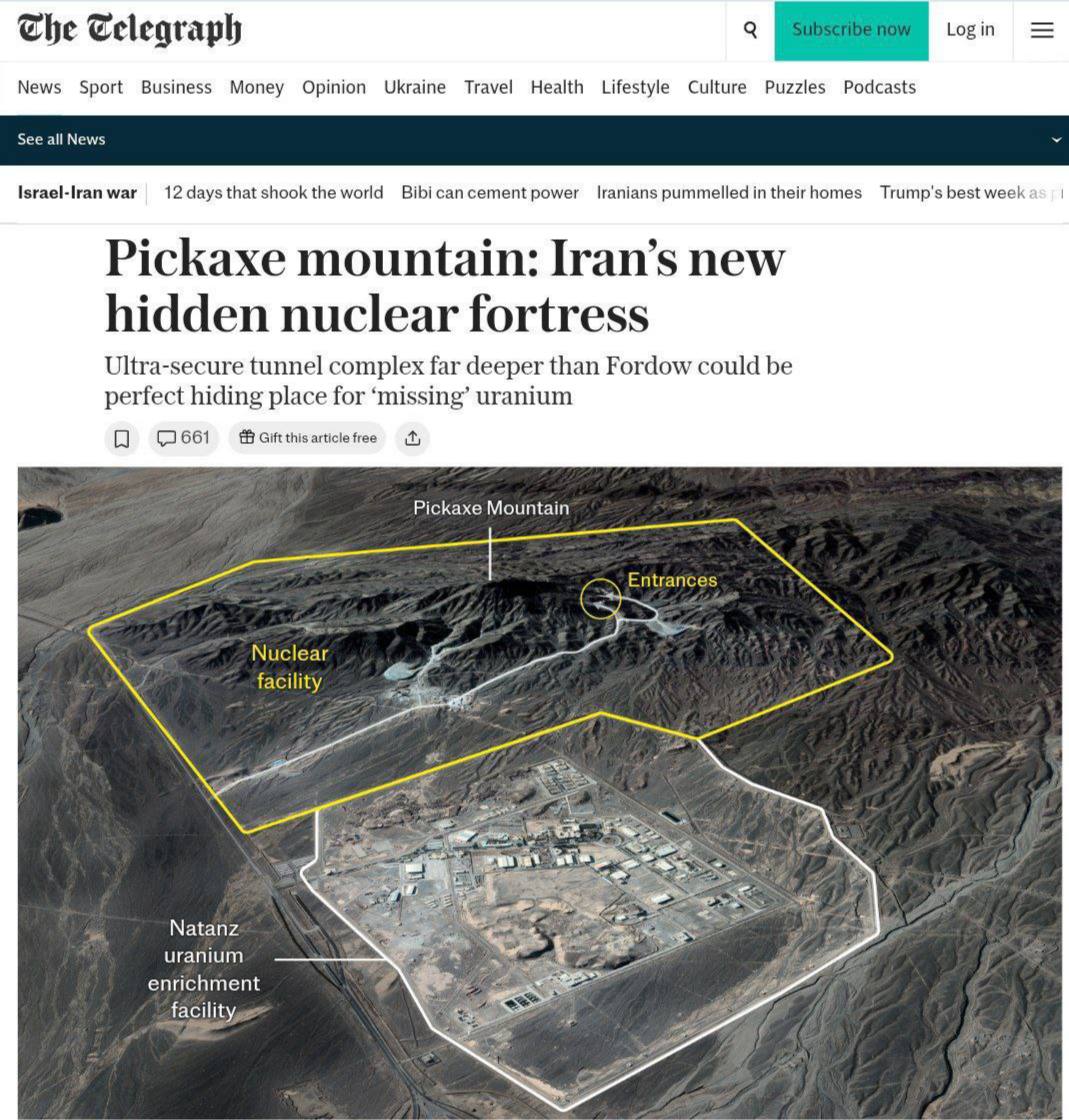 The Telegraph highlights that this “Pickaxe mountain” could serve as an ideal hideout for Iran"s highly enriched uranium. Additionally, there is another ultra-deep facility located near the uranium conversion site in Esfahan, which also escaped destruction during the U.S. strikes earlier this year.