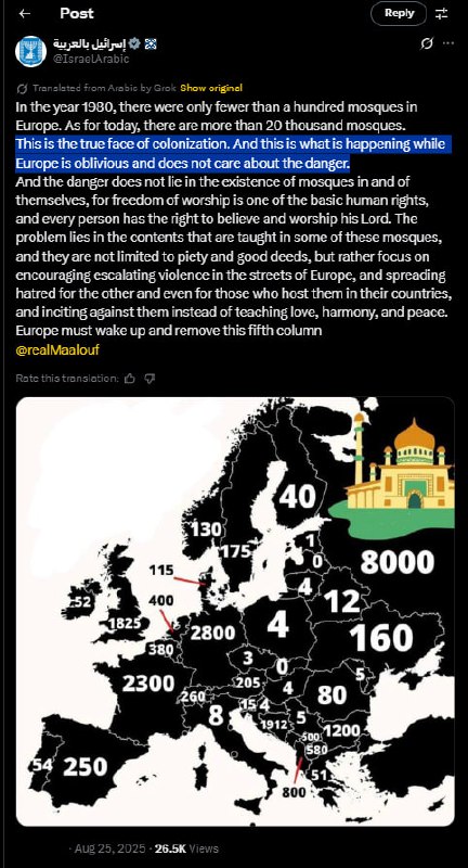 According to the ministry, the number of mosques in Europe has surged from fewer than 100 in 1980 to over 20,000 today. The ministry"s message emphasizes that while freedom of worship is a fundamental human right, the content taught in some mosques allegedly promotes violence and hatred rather than peace and harmony.
