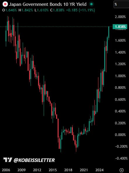 On December 1, 2025, Japan"s 10-year government bond yield surged to 1.84%, marking its highest level since April 2008. This increase signifies a substantial rise in borrowing costs for the Japanese government, which has maintained near-zero interest rates for an extended period. The recent spike in yields is a reflection of changing economic conditions, including rising inflation and shifts in government fiscal policy.