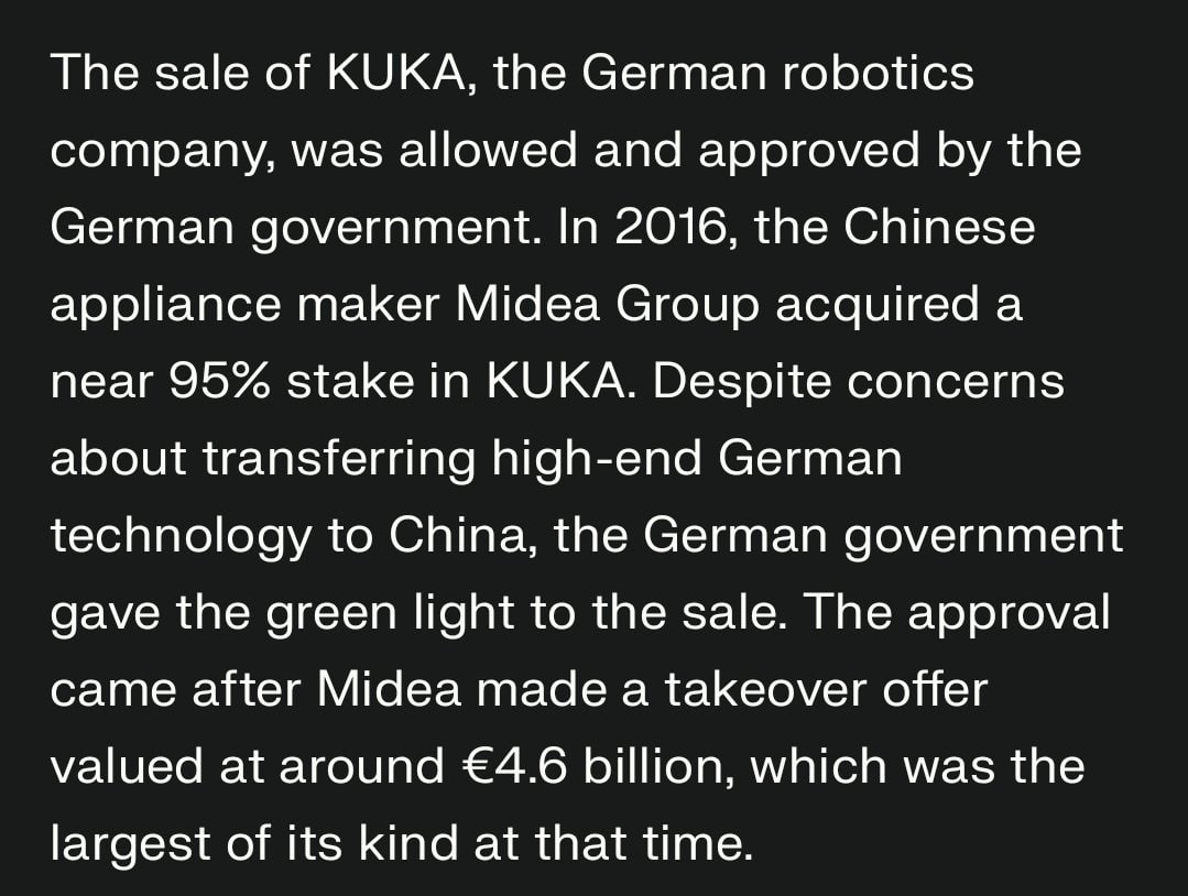 Angela Merkel"s government facilitated access for China to advanced German technology, according to reports. One significant instance involved the sale of Kuka, a leading producer of industrial robotics, to a Chinese firm. Kuka was recognized as one of the largest and most advanced robotics manufacturers globally.