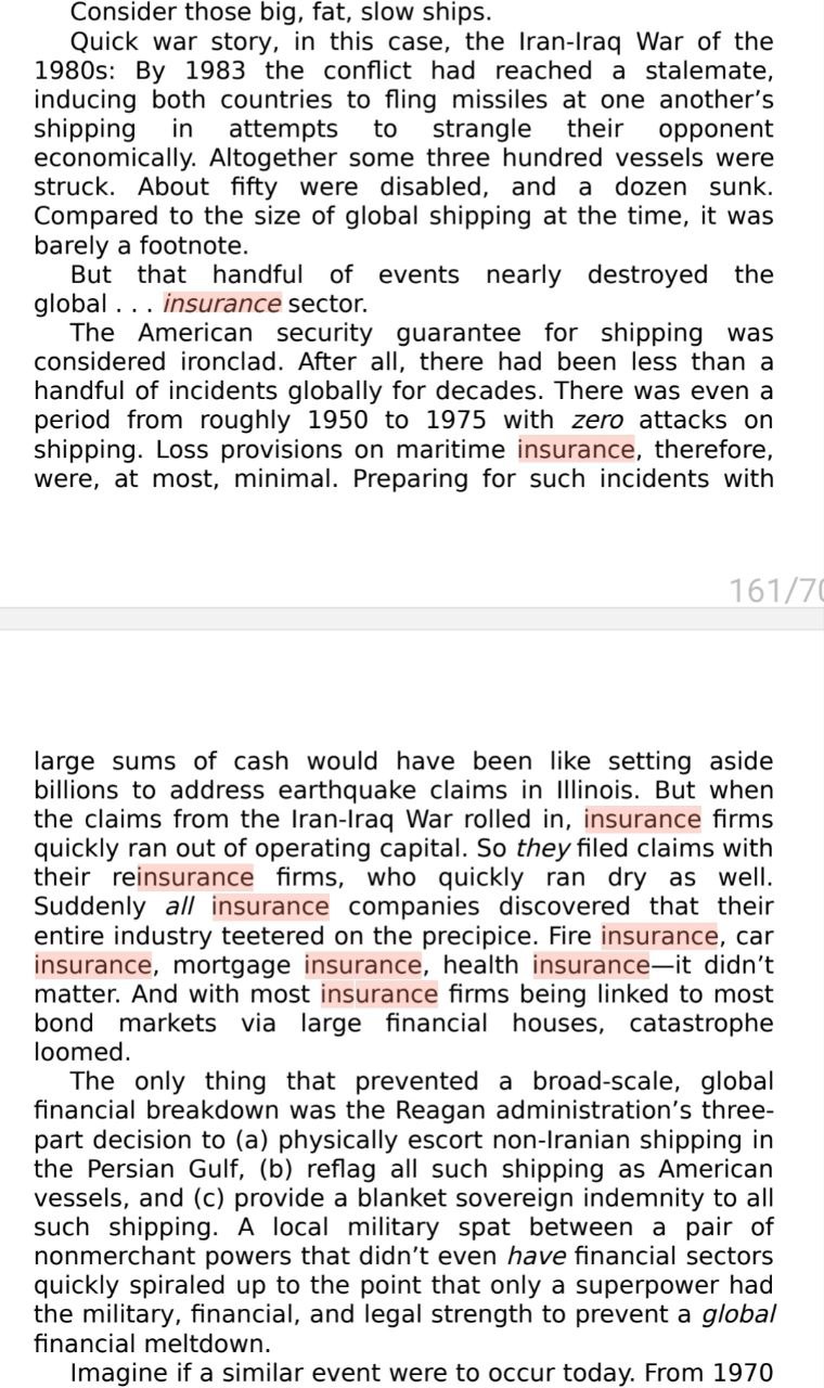 Despite the significant number of attacks, the overall impact on global shipping at the time was relatively minor, described by Zeihan as "barely a footnote" in the context of the vast scale of global maritime operations. However, the repercussions of these events were felt acutely within the insurance sector, which faced potential destabilization due to the increased risks associated with maritime shipping in conflict zones.
