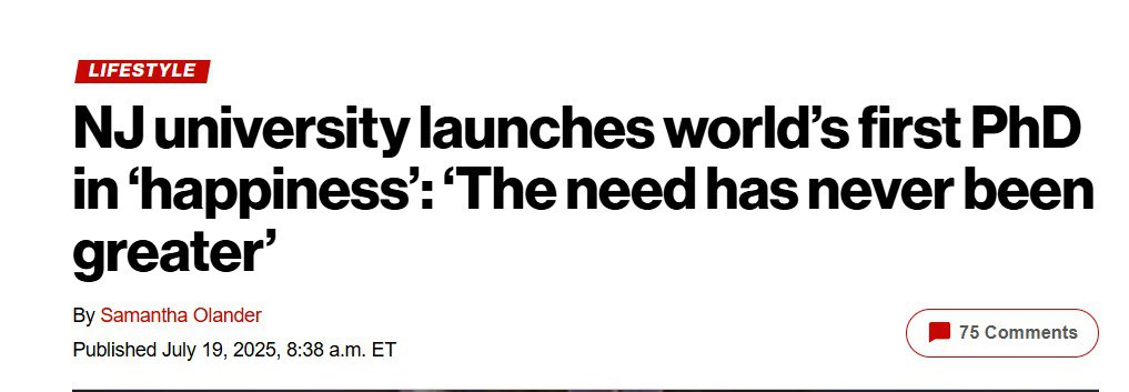New Jersey University has launched the world’s first Department of Happiness, offering a four-year online PhD program. The curriculum will cover subjects including neuroscience, psychology, religion, philosophy, literature, and leadership.