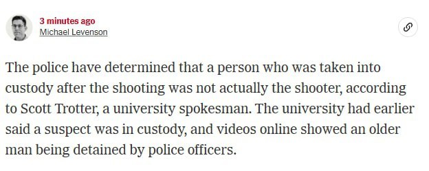 The police have cleared a suspect in a university shooting incident that occurred earlier today, September 10, 2025. According to Scott Trotter, a university spokesman, the individual taken into custody was not the shooter, despite initial reports indicating otherwise.