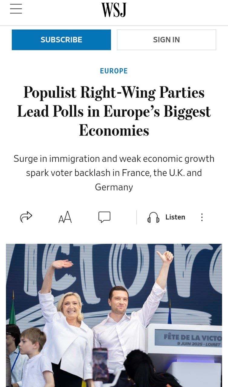 For the first time, populist or far-right parties are leading polls in the U.K., France, and Germany, signaling a significant shift in voter sentiment across Europe. The latest findings, reported by the Wall Street Journal, reflect growing discontent among citizens amid ongoing challenges such as high immigration rates and soaring inflation.