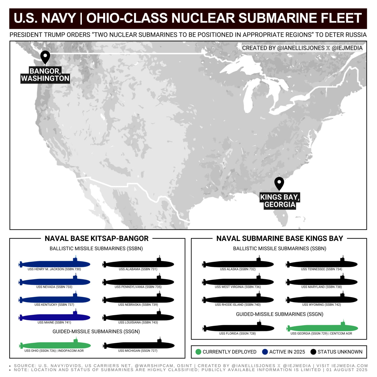 POTUS Orders Repositioning of Two Nuclear Subs Amid Rising Russian Threats