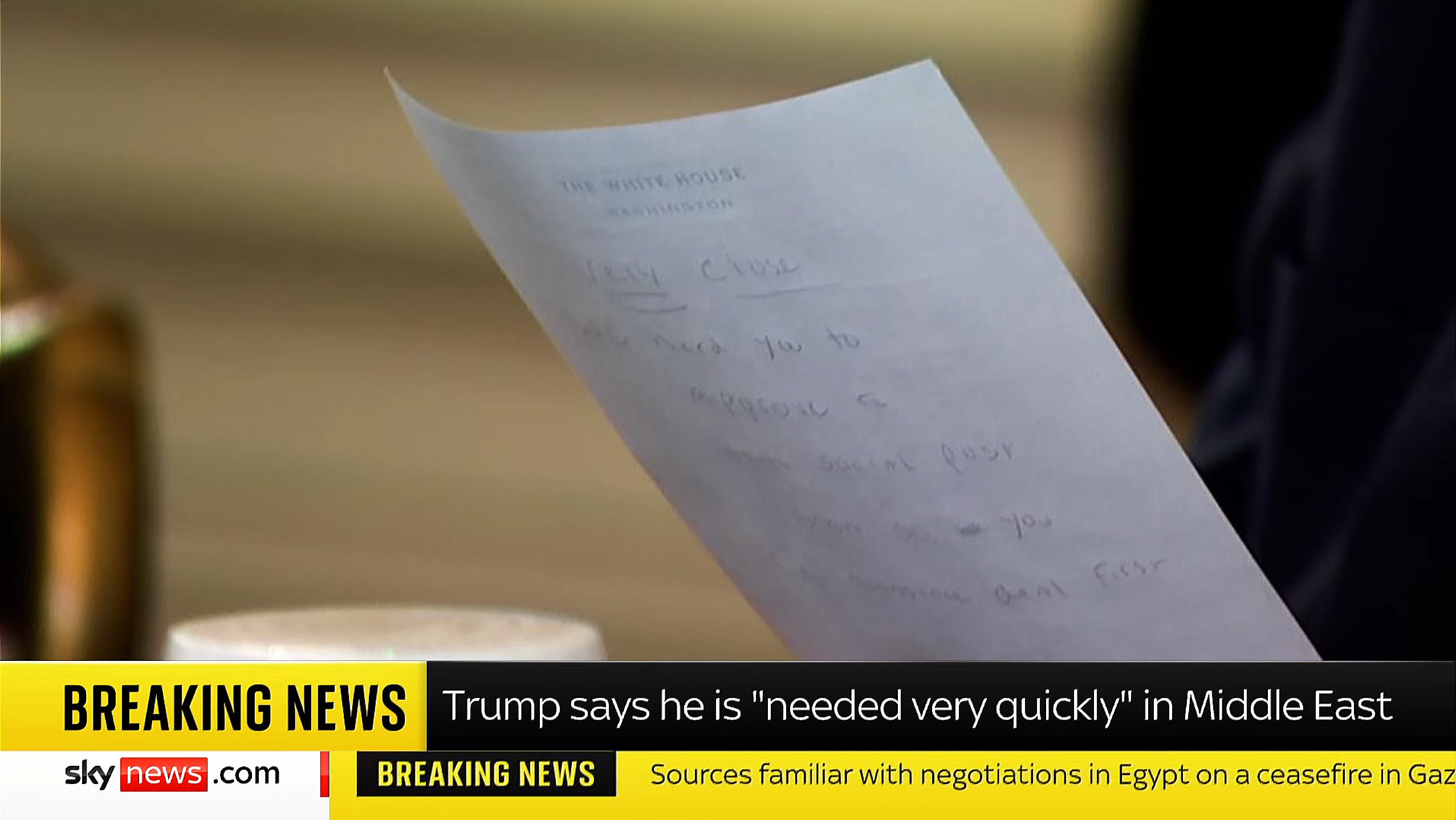 On Wednesday, October 8, 2025, Senator Marco Rubio handed a letter to former President Donald Trump regarding a Gaza-Israel deal during a White House press conference. Rubio stated, "Very close. We need you to approve a... social post... do you... deal first."