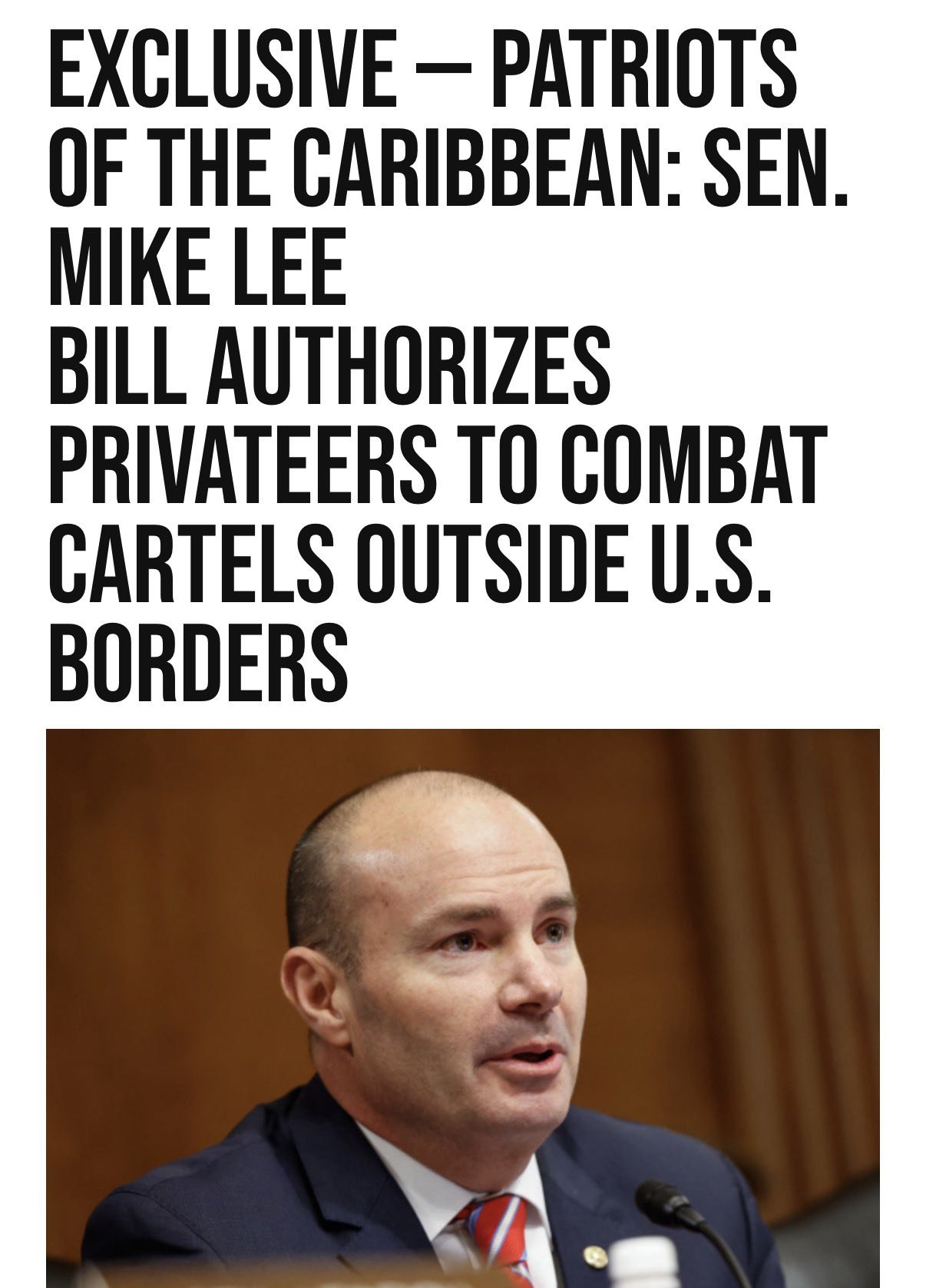 Senator Mike Lee Introduces Bill to Authorize Privateers Against Drug Cartels