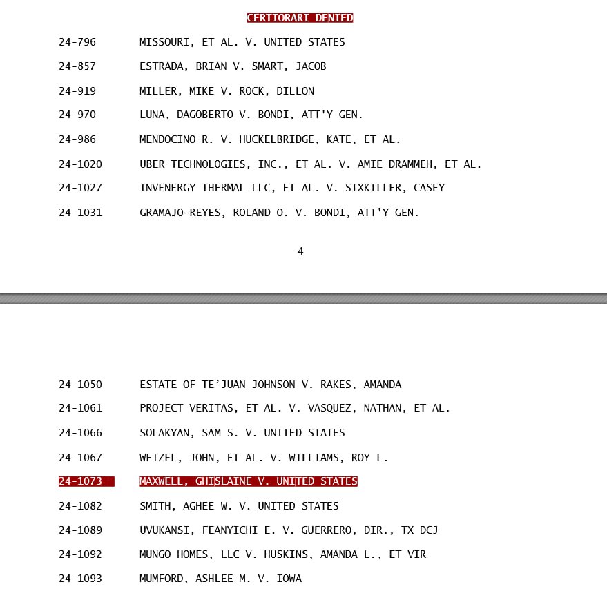 This ruling concludes Maxwell"s attempts to overturn her conviction, solidifying the legal consequences of her actions in connection with Epstein"s criminal activities.