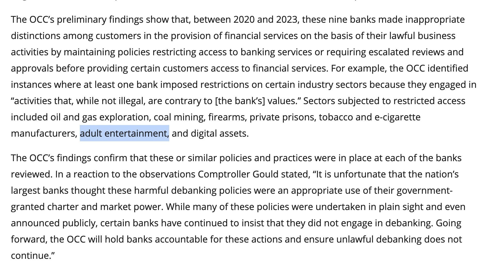 The announcement comes as part of ongoing efforts by the administration to address what it perceives as unfair treatment of certain industries by banks. The report does not specify the measures that will be taken to encourage banks to support these businesses.