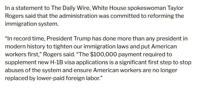 Taylor Rogers, a spokesperson for the administration, stated, "President Trump has done more than any president in modern history to tighten our immigration laws and put American workers first." This statement aims to address concerns raised by the President"s remarks.