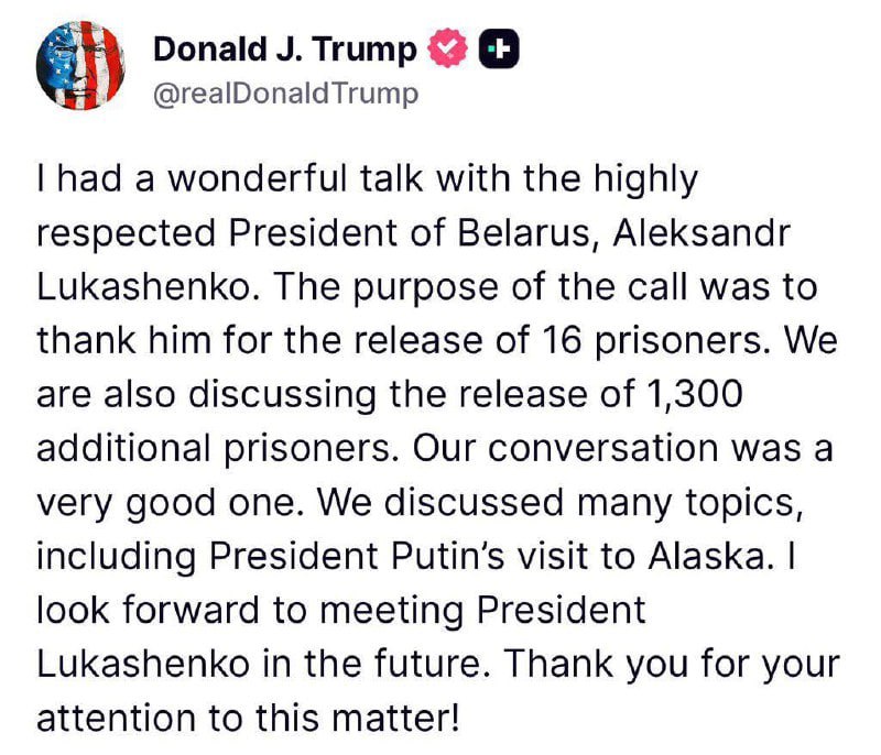 Trump and Lukashenko Discuss Release of 1,300 Belarusian Prisoners, Future Meeting Planned