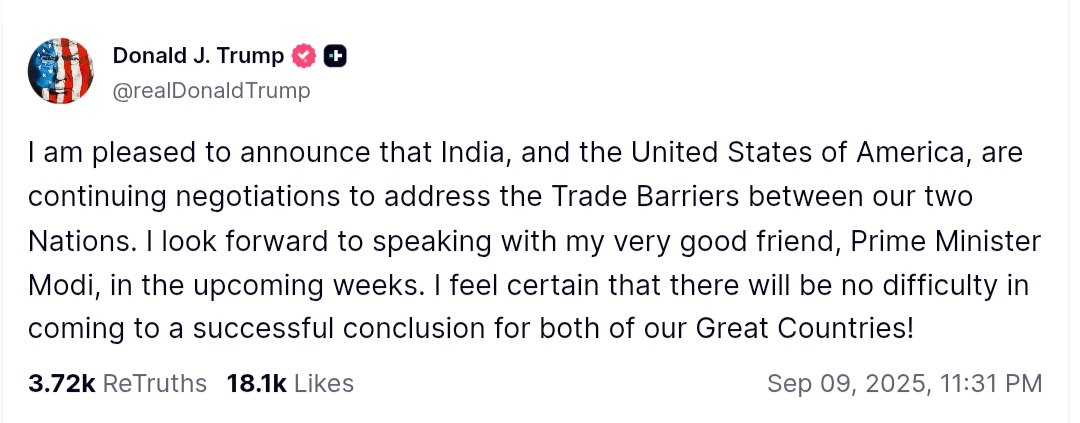 US President Donald Trump announced today that negotiations between the United States and India to address trade barriers will continue this month. Trump expressed optimism about reaching a successful agreement with Indian Prime Minister Narendra Modi, stating he looks forward to their upcoming discussions.