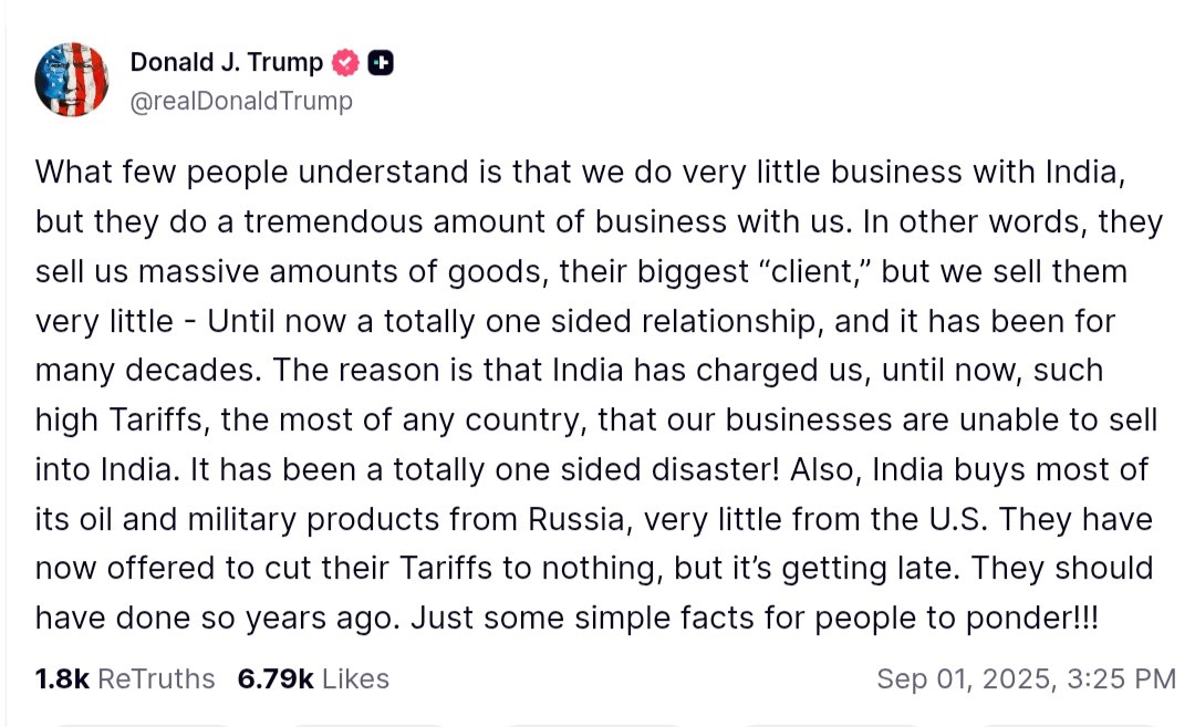 U.S. President Donald Trump has sharply criticized India"s trade policies, labeling the U.S.-India trade relationship as "totally one-sided" and a "disaster" that has persisted for decades. Speaking on Monday, September 1, 2025, Trump pointed to India"s high tariffs, which he claims hinder U.S. businesses from competing effectively in the Indian market.