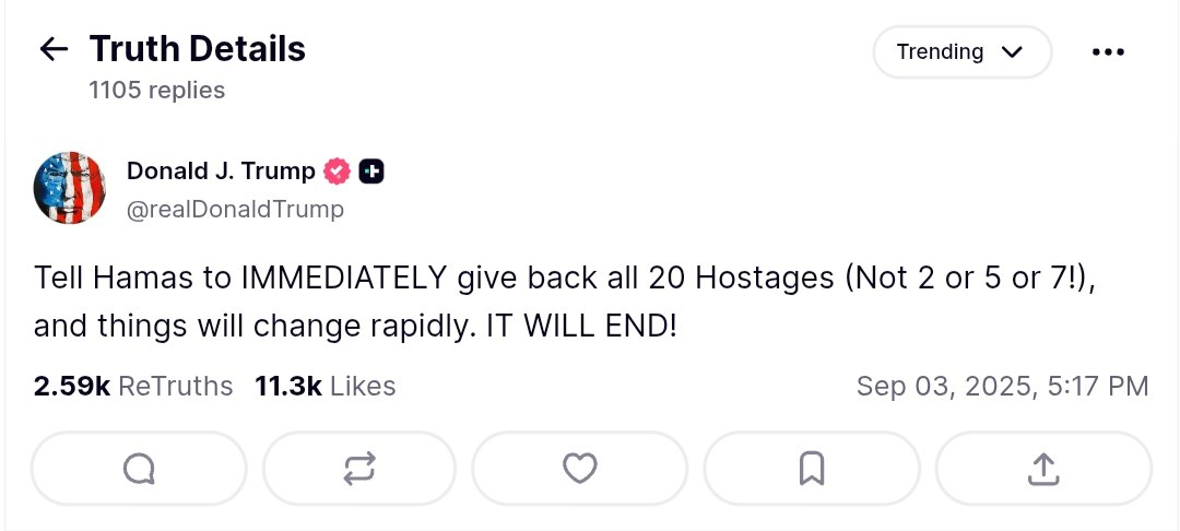 US President Donald Trump has issued a strong ultimatum to Hamas, demanding the immediate return of all 20 hostages taken during recent conflicts, stating, "Not 2 or 5 or 7! All 20!" He emphasized that significant changes would occur swiftly if the captives were released.