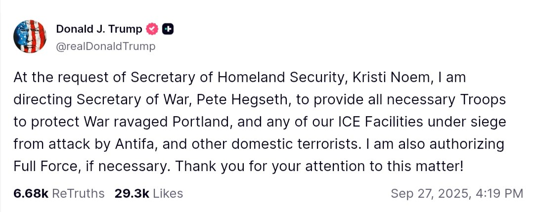 US President Donald Trump has directed Secretary of War Pete Hegseth to deploy troops to protect Portland, Oregon, following a request from Secretary of Homeland Security Kristi Noem. The directive comes in response to ongoing unrest in the city, which has been described as war-ravaged, and aims to safeguard ICE facilities that are reportedly under siege from groups such as Antifa and other domestic terrorists.