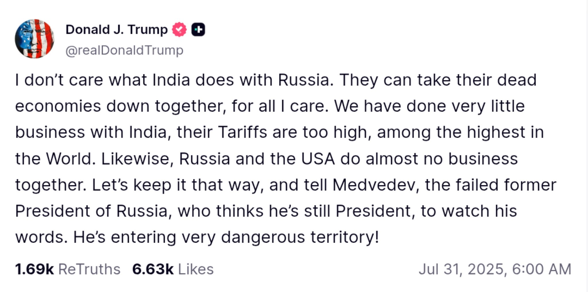 Trump Dismisses India-Russia Relations, Warns Medvedev of "Dangerous Territory"