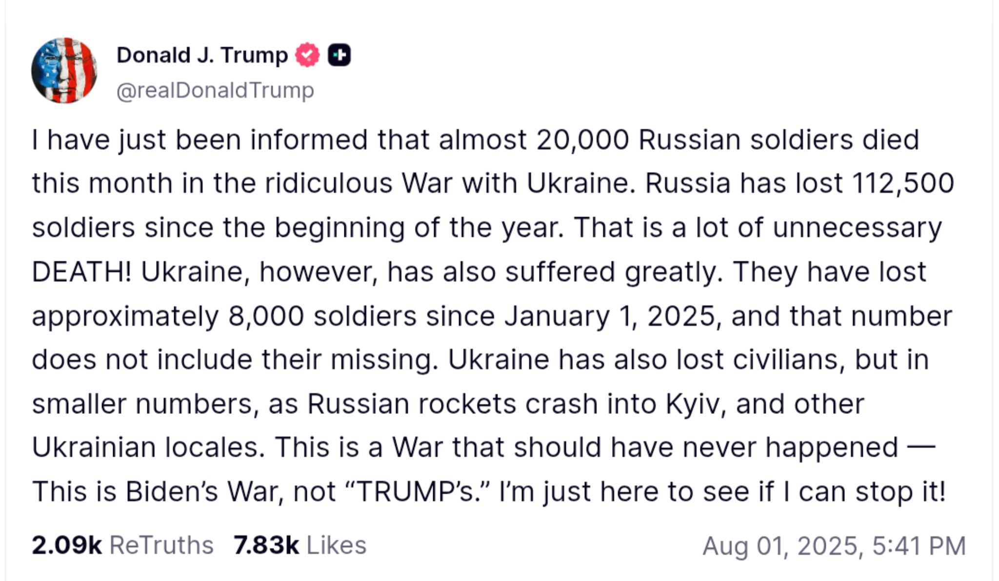 # Trump Reports 20,000 Russian Soldiers Killed in October, Totaling 112,000 This Year In a startling claim, former President Donald Trump has reported that approximately 20,000 Russian soldiers have been killed in the month of October alone, bringing the total number of Russian military casualties to 112,000 since the beginning of this year. The former president"s announcement, made during a recent rally, underscores the ongoing and devastating toll of the conflict in Ukraine, where Ukrainian military losses also continue to mount, with reports indicating around 8,000 Ukrainian soldiers have been killed this year.