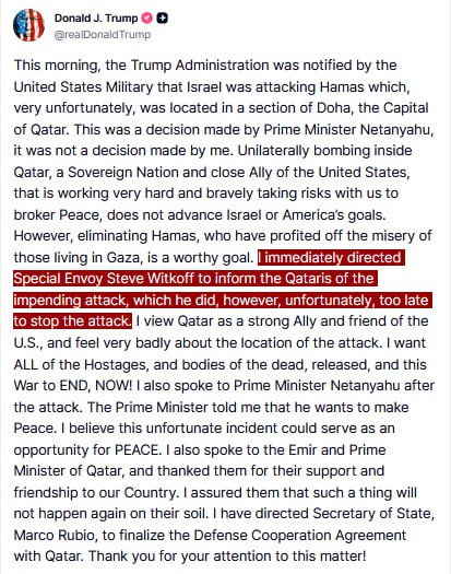 Former President Donald Trump has updated his statement regarding a warning issued by real estate developer Howard Witkoff to Qatar about an impending attack, stating it was "unfortunately, too late to stop the attack." This comment comes amid ongoing discussions about security and intelligence failures in the region.