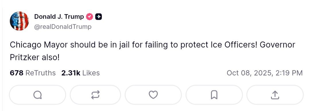 US President Donald Trump stated that Chicago Mayor Brandon Johnson and Illinois Governor JB Pritzker should be jailed for their failure to protect Immigration and Customs Enforcement (ICE) officers. Trump"s comments were made in a recent statement, highlighting his criticism of the local leadership in Chicago.