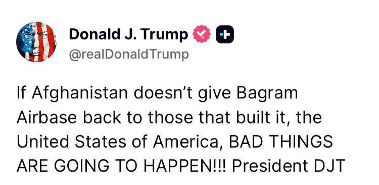 Former President Donald Trump has issued a warning to Afghanistan regarding the Bagram Airbase in Kabul. In a recent statement, Trump threatened that the country would face "BAD THINGS" if it does not relinquish control of the airbase.