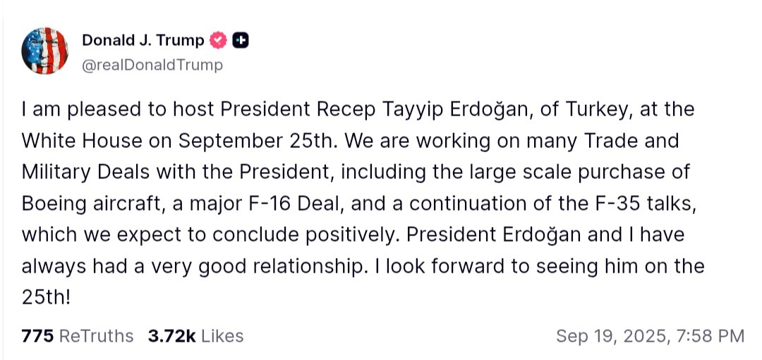 US President Donald Trump announced that he will host Turkish President Recep Tayyip Erdoğan at the White House on September 25th. The meeting will focus on various trade and military agreements between the two nations.