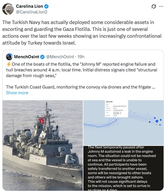 The Turkish Navy has deployed significant assets to escort and guard the Gaza Flotilla, marking a notable escalation in Turkey"s confrontational stance towards Israel. This deployment is part of a series of actions taken by Turkey in recent weeks that indicate increasing tensions between the two nations.