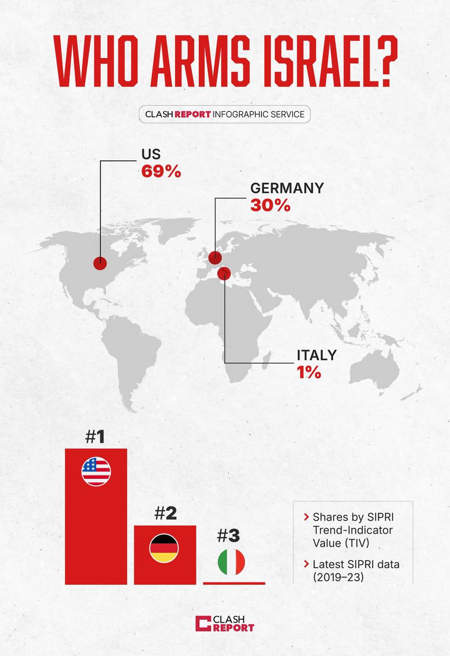 The United States and Germany remain Israel"s primary weapons suppliers, providing 69% and 30% of its arms, respectively, between 2019 and 2023. Despite escalating violence in the region, both nations have continued their military support, with the U.S. increasing aid following the October 7, 2023, attacks.