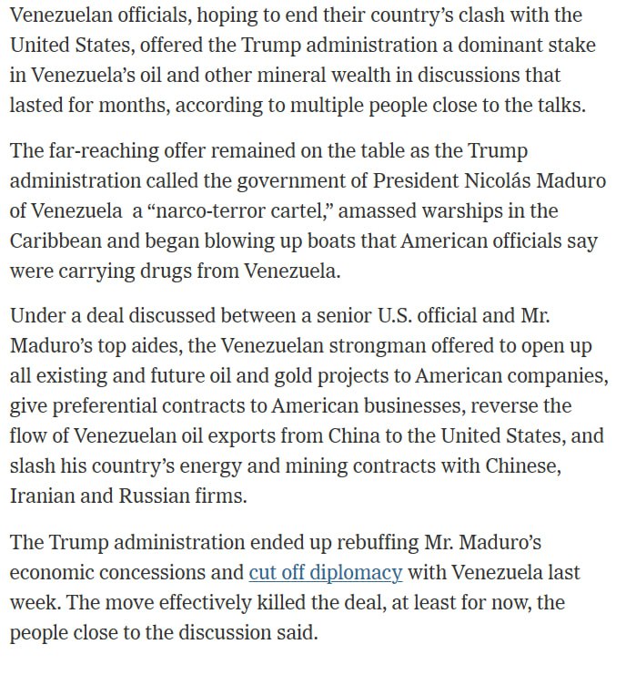 For further context on international relations, previous reports have indicated that the Maduro administration offered the U.S. access to oil and minerals, which the Trump administration ultimately rejected.