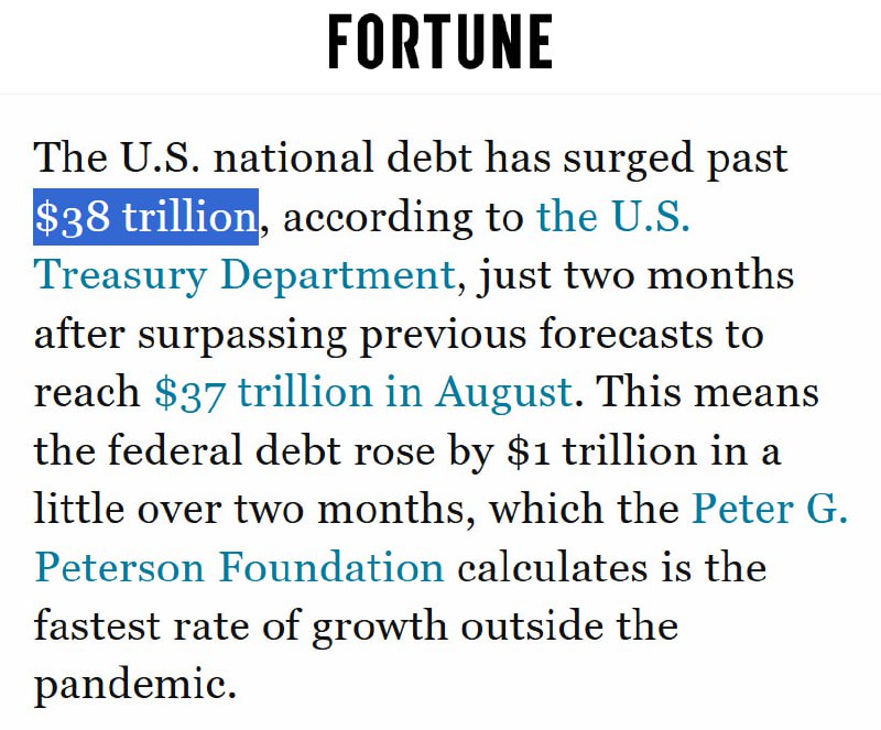 As of October 22, 2025, the U.S. national debt has surpassed $38 trillion. This increase marks a rise of $1 trillion over the past two months.