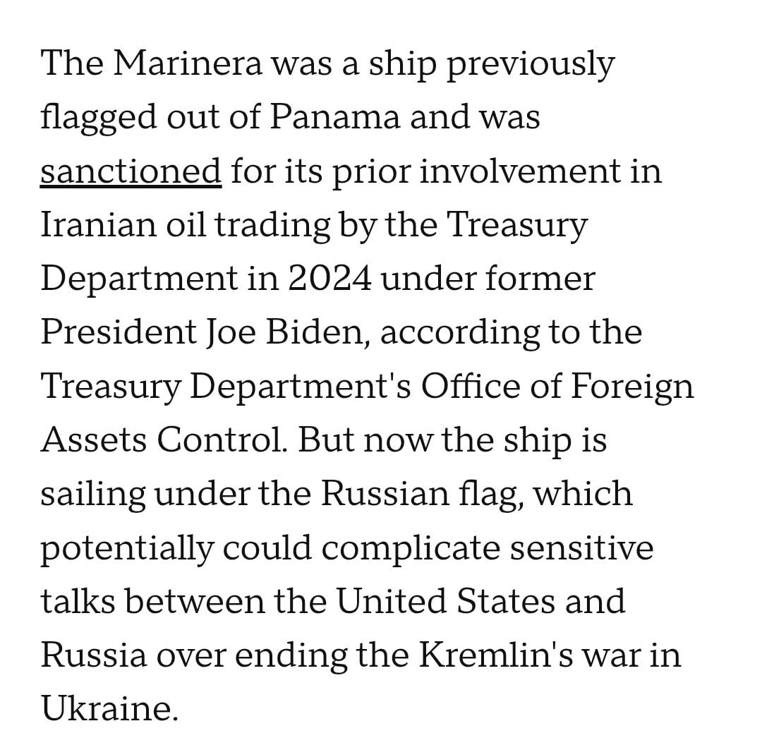 U.S. Plans to Seize Russian-Flagged Tanker Marinera This Week