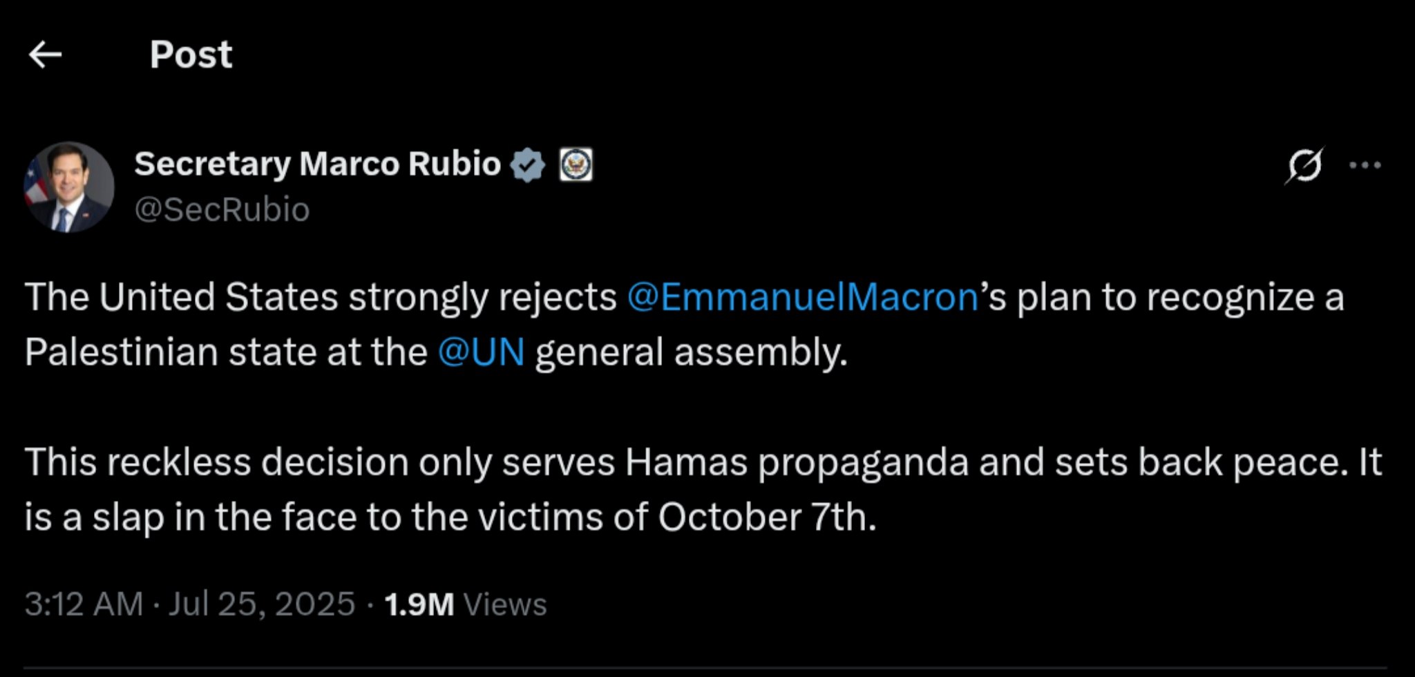In a significant diplomatic rebuff, U.S. Secretary of State Marco Rubio has publicly denounced French President Emmanuel Macron"s recent initiative to recognize a Palestinian state at the United Nations General Assembly. This announcement, made during a press briefing on Thursday, has sparked a firestorm of reactions from global leaders and experts, with Rubio labeling the proposal as "reckless" and detrimental to ongoing peace efforts in the Middle East.