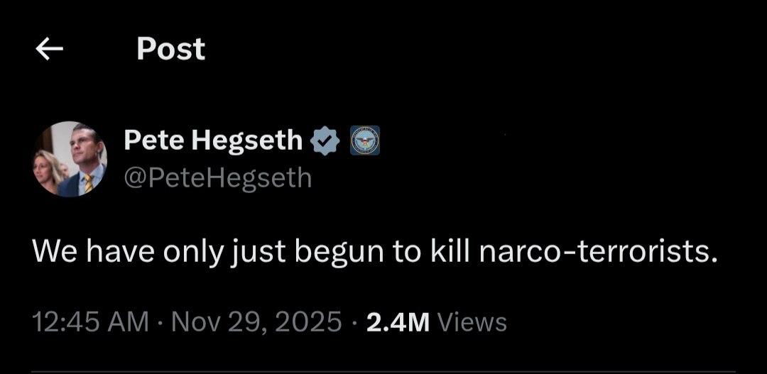 US Secretary of War Pete Hegseth stated, "We have only just begun to kill narco-terrorists," during a recent address. This statement underscores the ongoing efforts of the U.S. government to combat narco-terrorism.