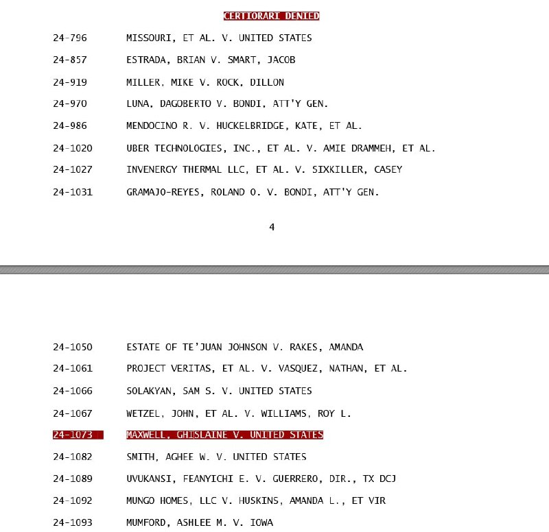 The U.S. Supreme Court has rejected Ghislaine Maxwell"s appeal to overturn her 2021 conviction for recruiting and grooming underage girls for Jeffrey Epstein"s sex trafficking operation. The decision was announced on October 6, 2025.