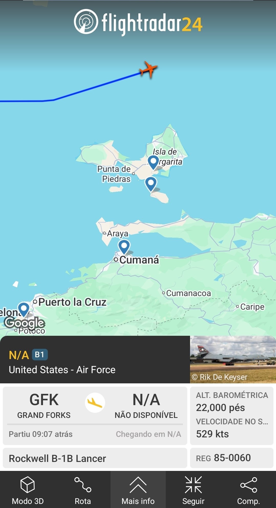 On Monday, October 27, 2025, two B-1B Strategic Bombers from the United States Air Force (USAF) conducted a flyover near La Margarita Island, Venezuela. This maneuver was described as a greeting to the Chavista elites and their Iranian guests.